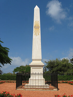 A site has been selected for a Bahá’í Temple in the vicinity of the Bahá’í World Centre on Mt. Carmel in Haifa, Israel. It is near the spot where Bahá’u’lláh chanted the Tablet of Carmel, the "Charter of the World Spiritual and Administrative Centers of the Faith on that mountain" according to Shoghi Effendi. A design by Charles Mason Remey was approved by Shoghi Effendi. A model based on the design was constructed and is on display in the upper hall of the mansion at Bahji. In August 1971 the Universal House of Justice erected an obelisk on the site, on the side of which is the Greatest Name.